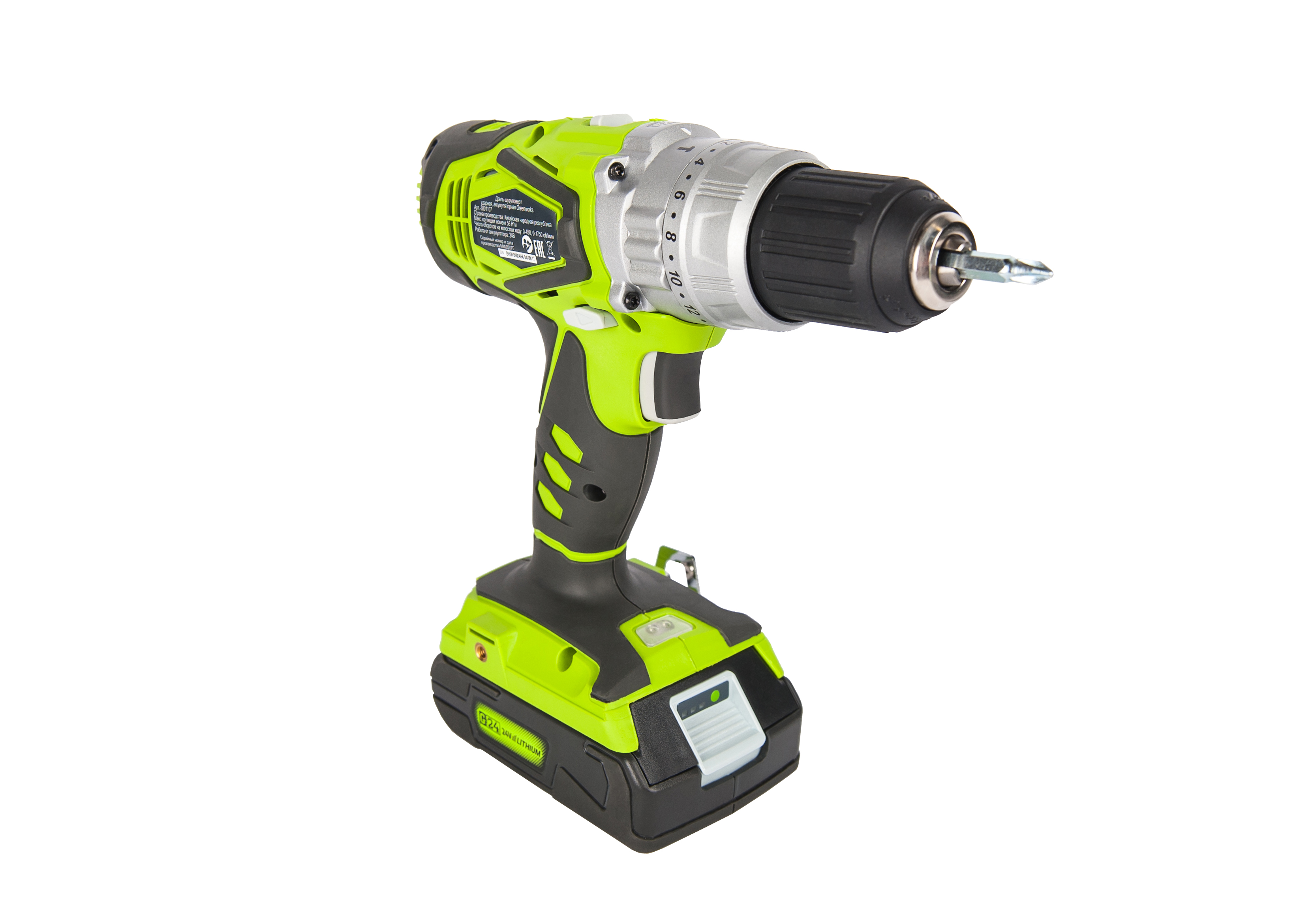 Аккумуляторная дрель-шуруповерт Greenworks G24CD серии 24V - сочетает в себе три функции: сверление с ударом, сверление без удара и работа с шурупами.