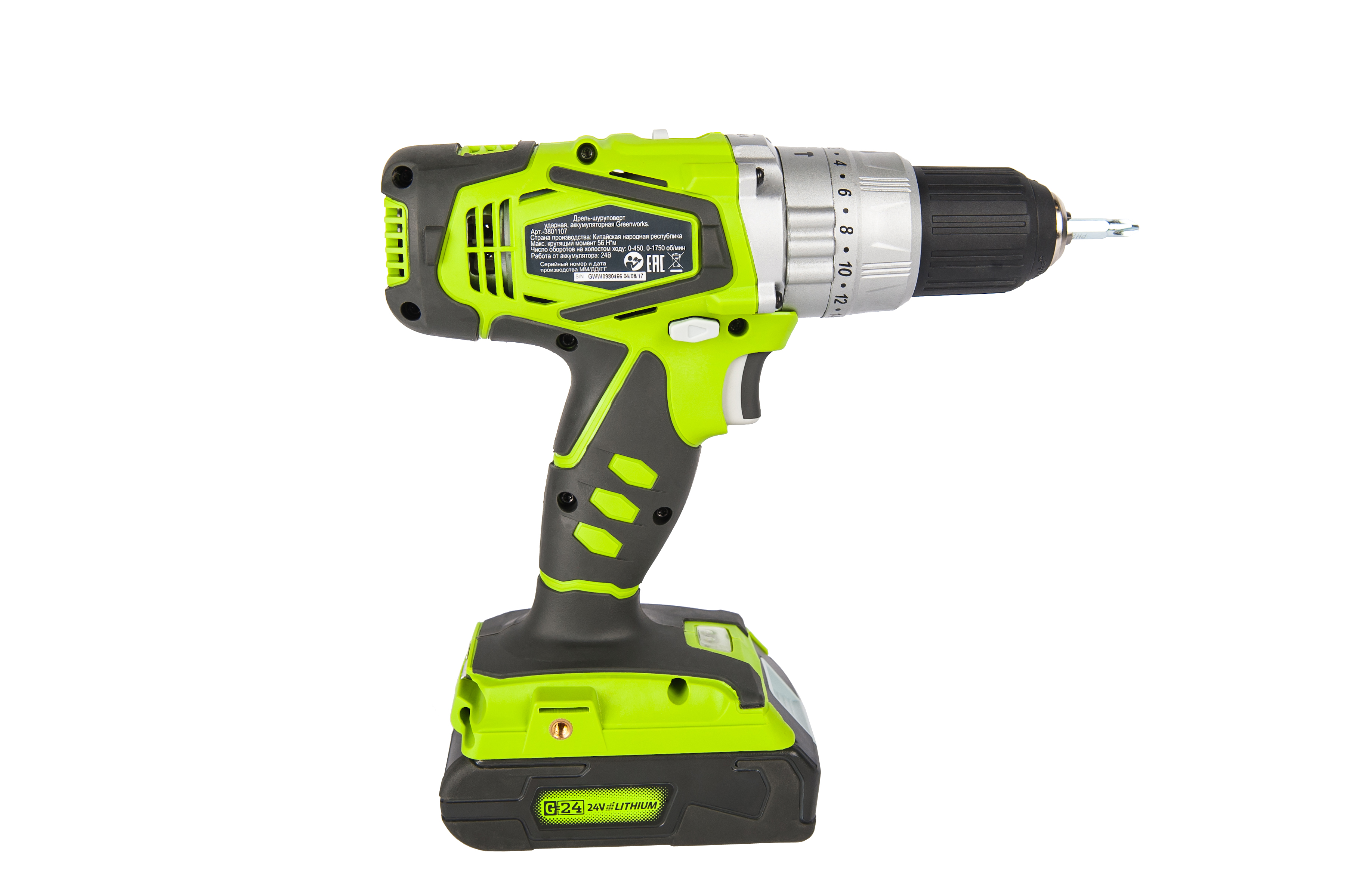 Дрель-шуруповерт ударная аккумуляторная Greenworks 24V, артикул 3802407;
