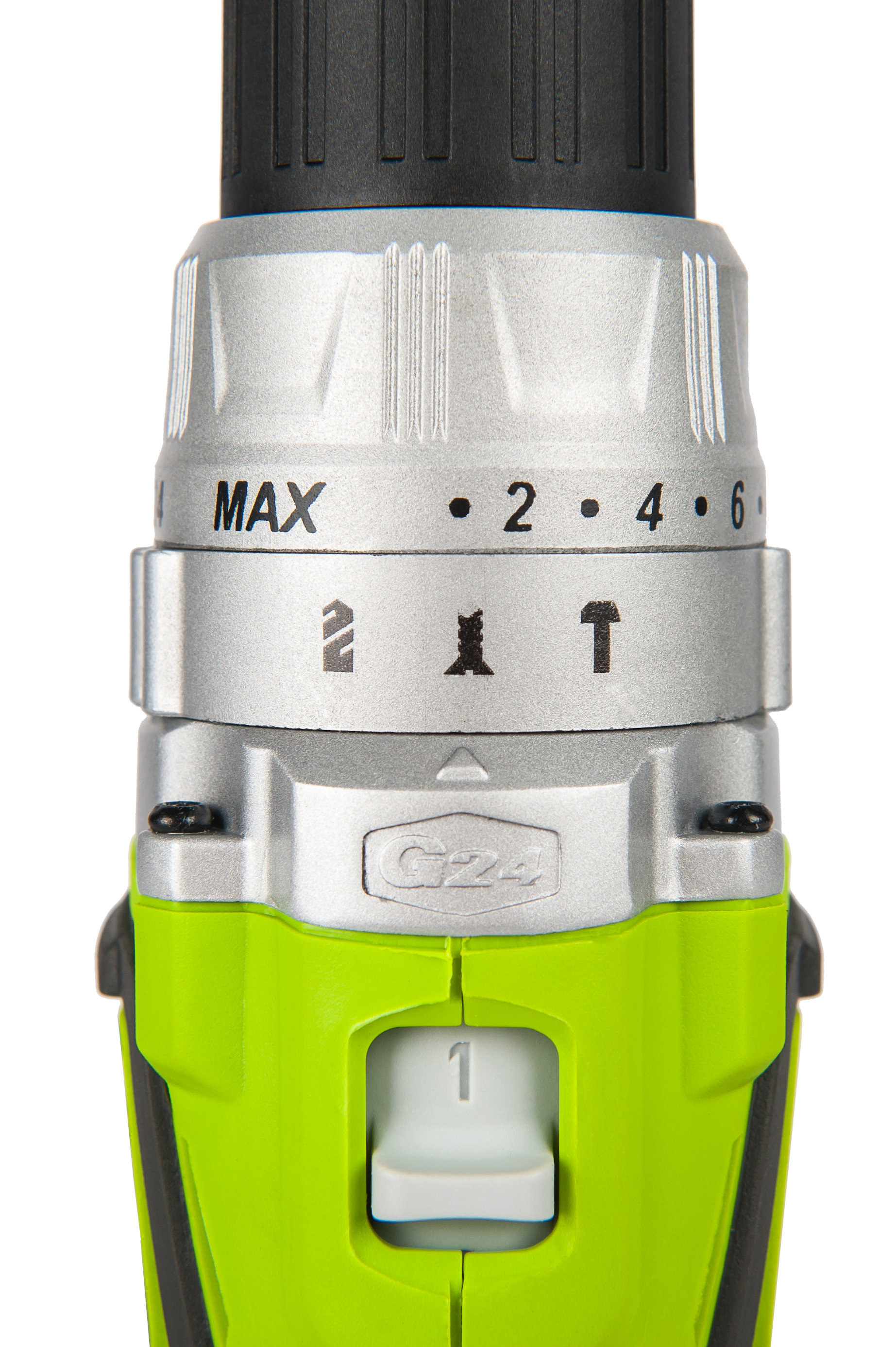 Аккумуляторная дрель-шуруповерт Greenworks G24CD серии 24V - сочетает в себе три функции: сверление с ударом, сверление без удара и работа с шурупами.