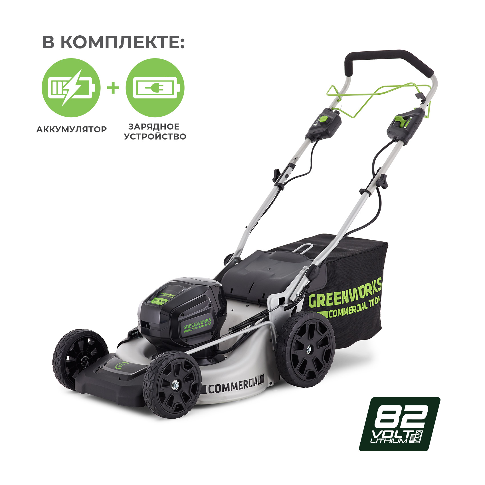 Газонокосилка аккумуляторная Greenworks Pro 82V (модель GC82LM51K5) - газонокосилка профессионального уровня для коммерческого применения.