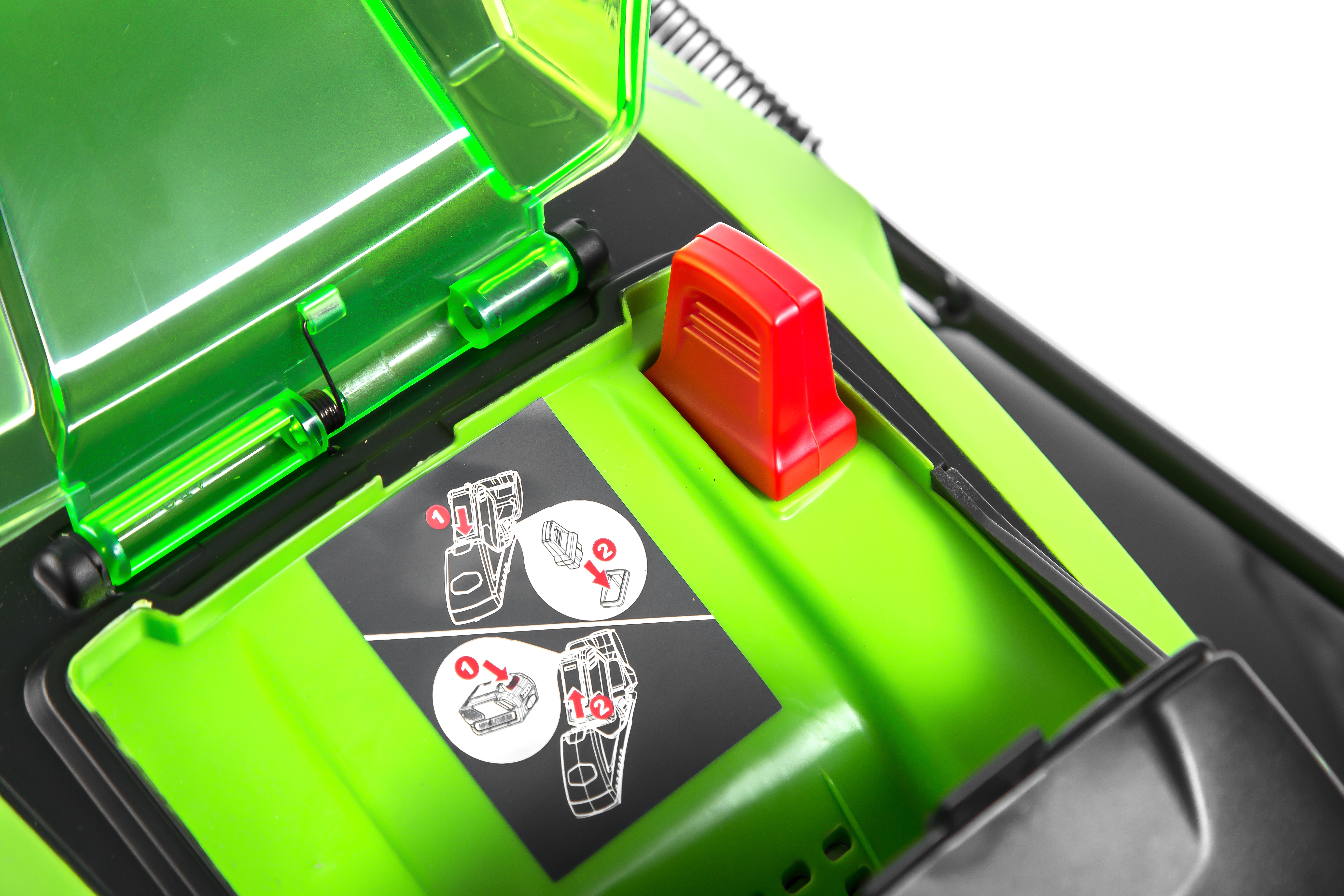 Газонокосилка работает от аккумуляторной батареи G-MAX 40V (3А/Ч в комплекте), которую можно использовать другими с устройствами из линейки 40 вольтовой серии.