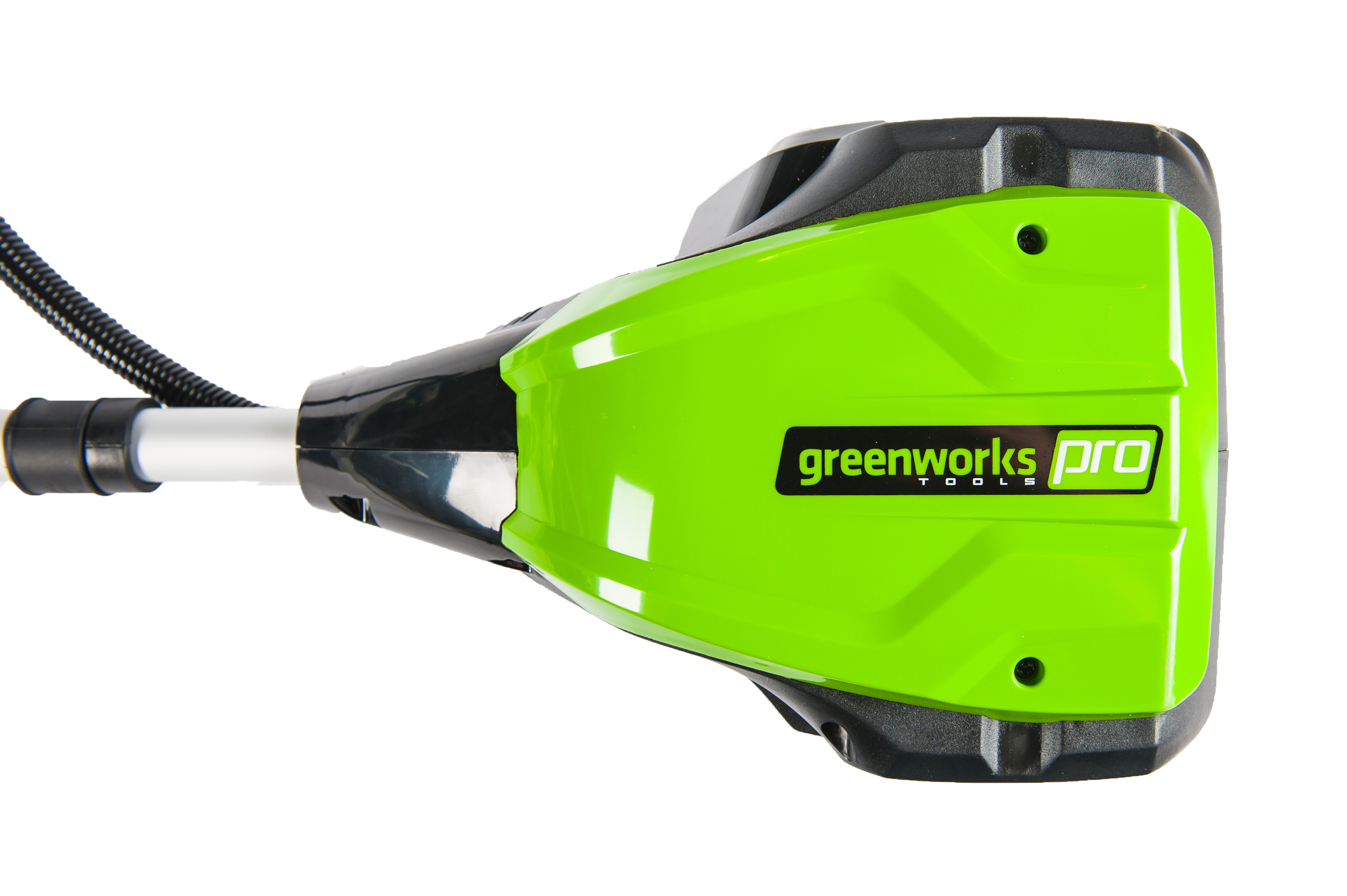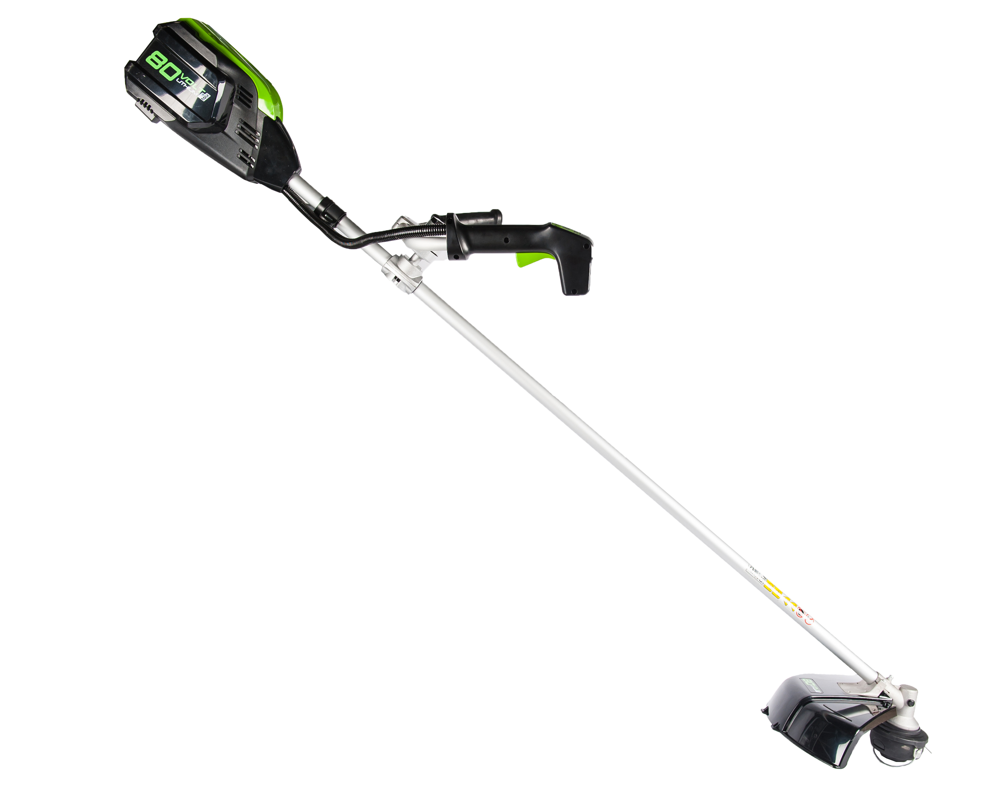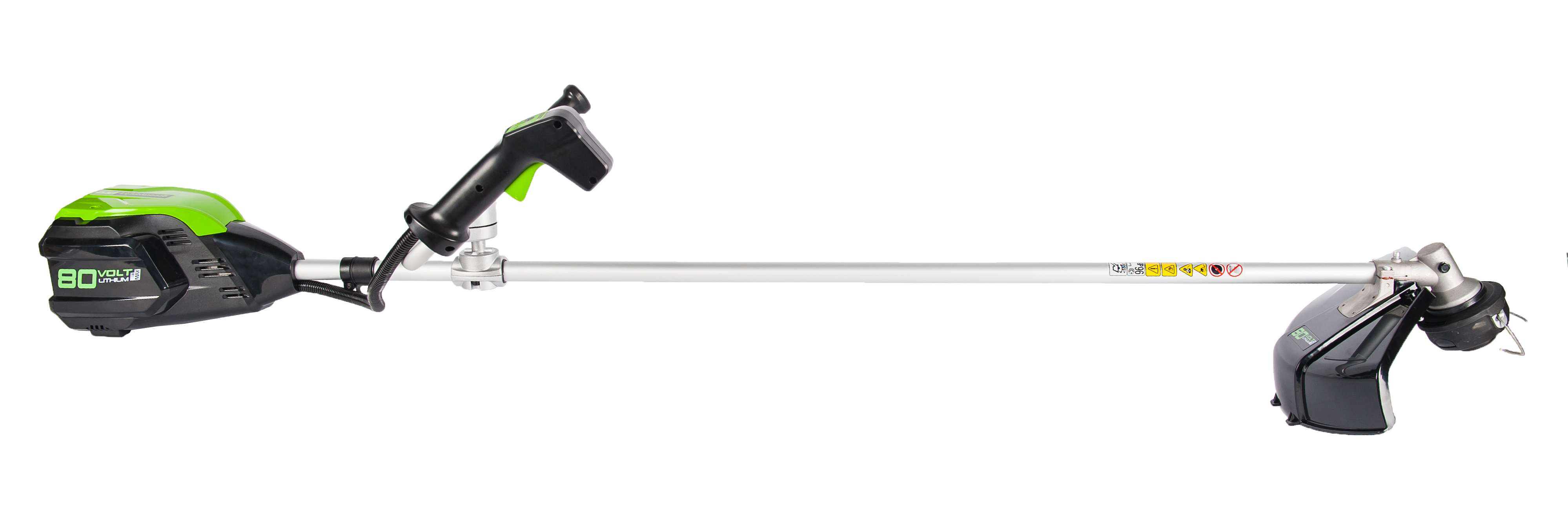 Триммер работает от аккумуляторной батареи 80V PRO, которую можно использовать со всеми устройствами GreenWorks из линейки техники 80 вольт.