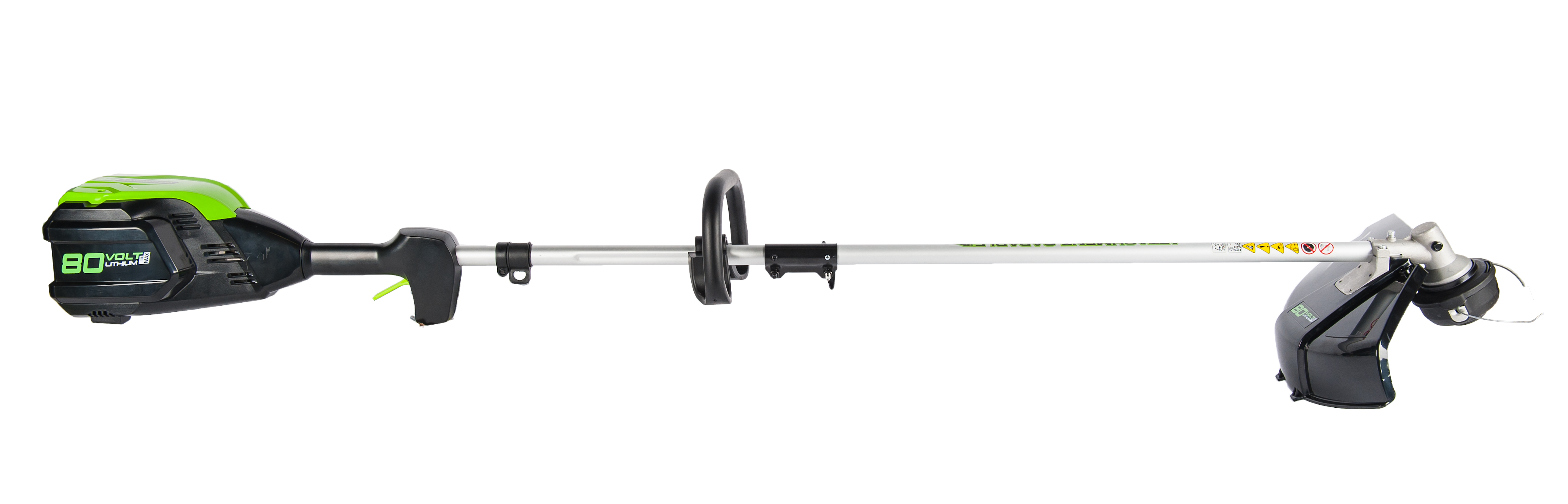 Триммер работает от аккумуляторной батареи 80V PRO, которую можно использовать со всеми устройствами GreenWorks из линейки техники 80 вольт.
