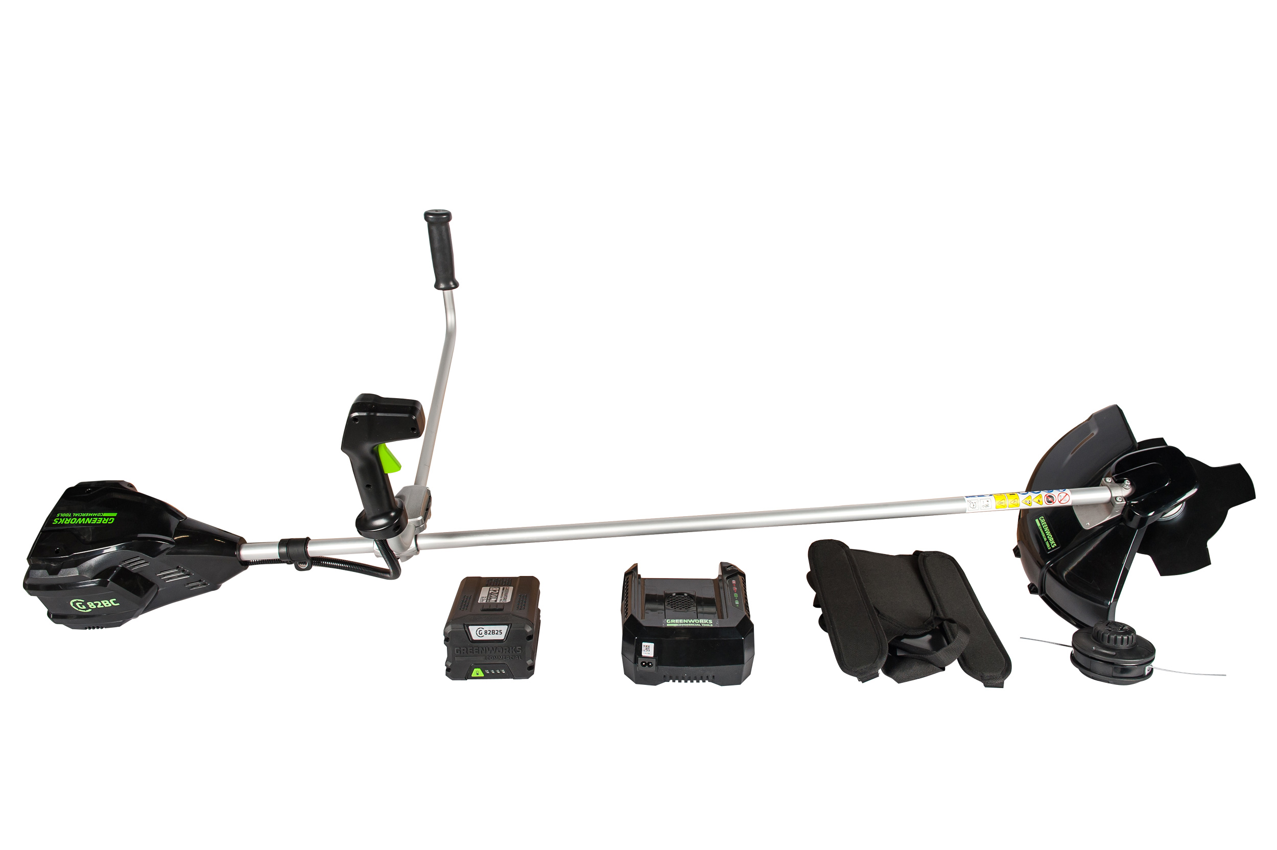 Триммер аккумуляторный садовый Greenworks GС82BCBK25 из линейки устройств 82V Commercial - профессиональная модель, специально разработанная для коммерческого применения, но так же подходящая для решения бытовых задач. Это отличная альтернатива бензиновым триммерам для постоянной работы. Благодаря ширине скашивания 41 см и 2 мм леске с автоподачей из катушки он легко справится с высокой травой, а установив пильный диск можно срезать и толстый кустарник.