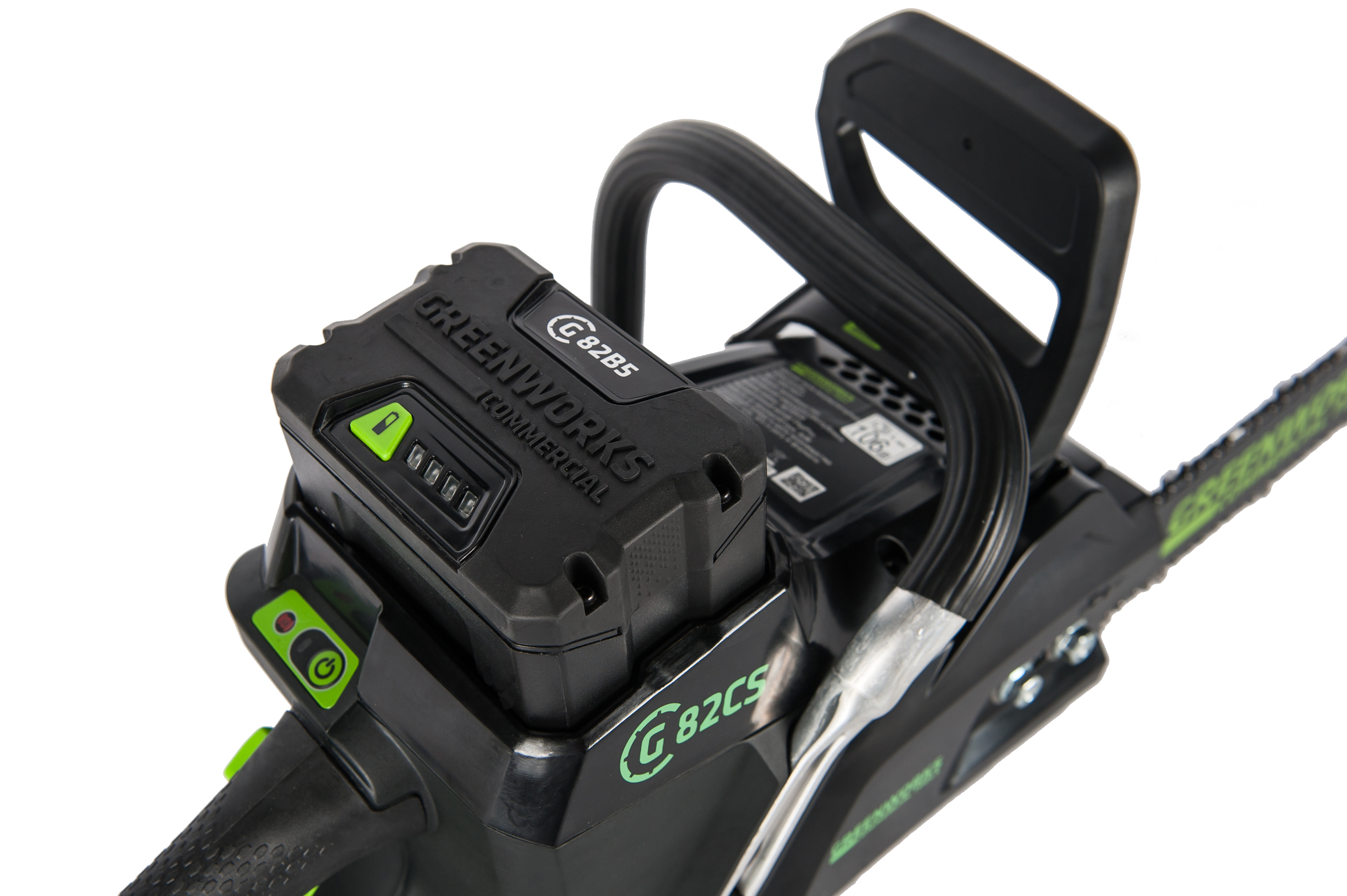 Цепная пила Greenworks работает от аккумуляторных батарей 82V Commercial. Благодаря высокотехнологичным ячейкам, плате управления и защитному чипу, они обладают долгим сроком службы - до 2000 циклов заряда-разряда, поддерживают функцию быстрой зарядки и заряжаются на 50% за 30 минут, а на 100% за 60 минут. И эти батареи можно использовать не только с этой пилой, но и с другими устройтсвами линейки Greenworks 82V Commercial.
