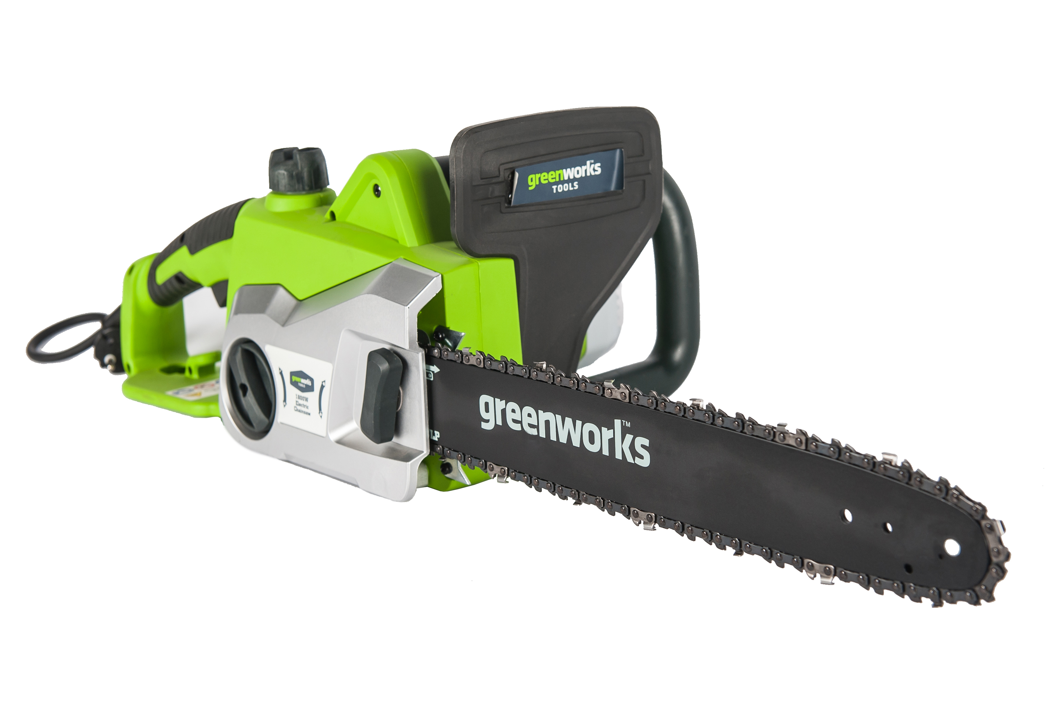 Цепная электрическая пила GreenWorks модель GCS1836 из серии устройств 230V - отлично подойдет для заготовки дров, пиления деревьев, веток и сучьев на приусадебном участке.